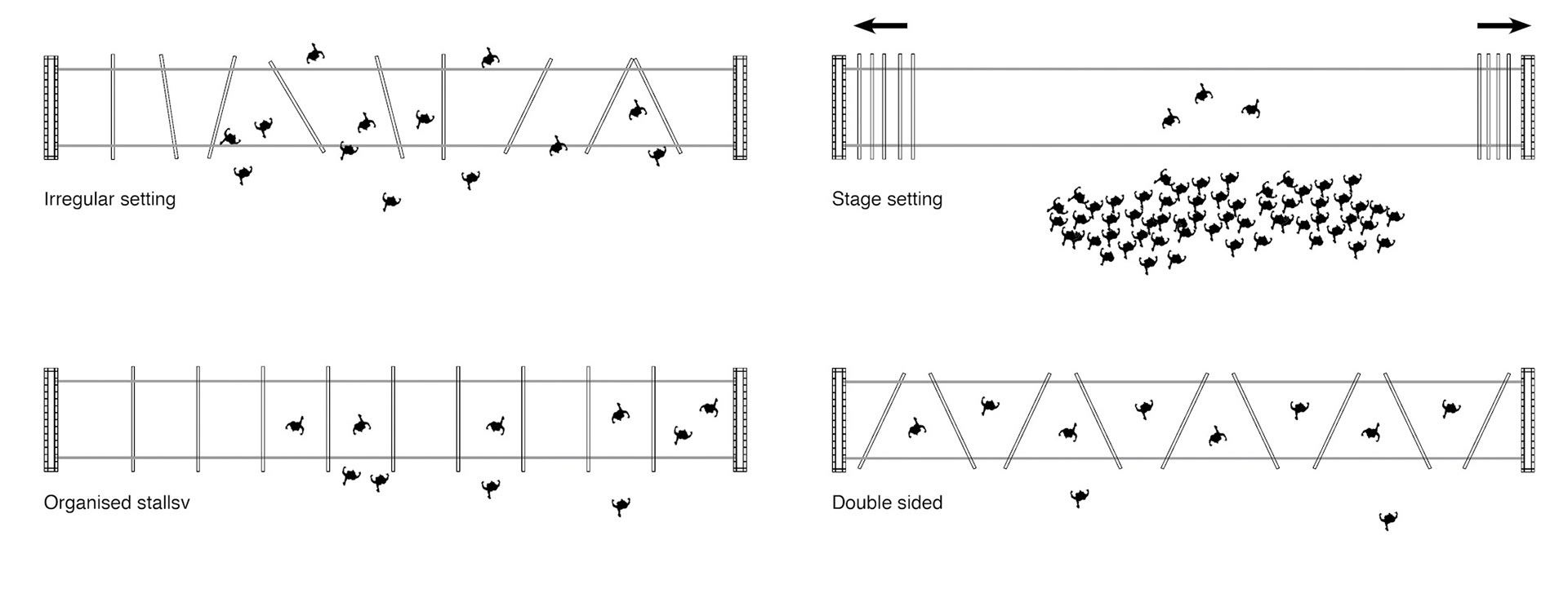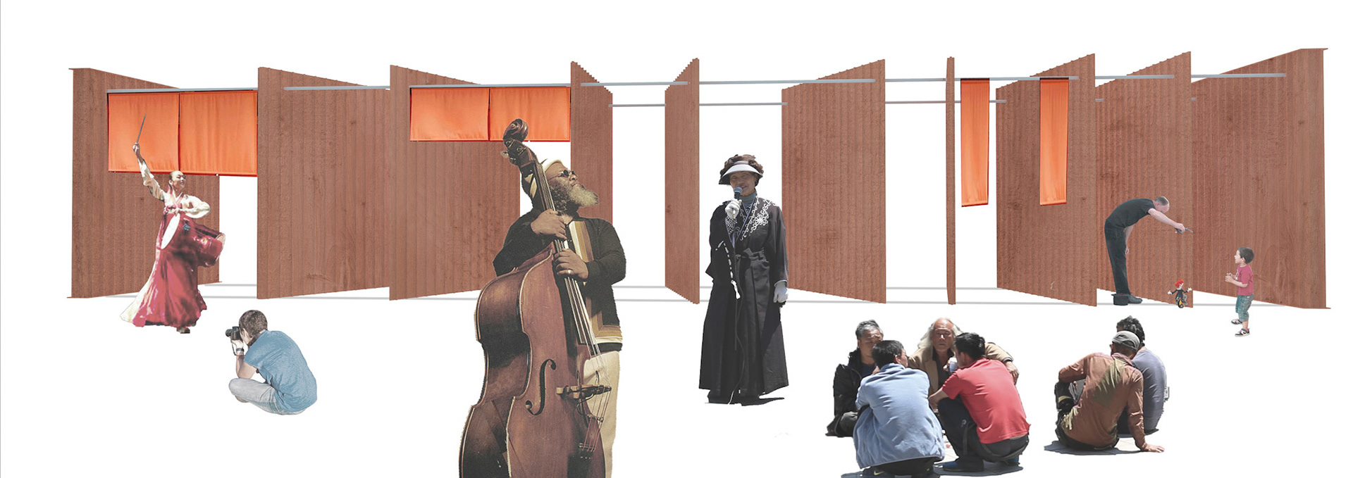 Thus, two readaptable pavilions were conceived to accommodate a variety of new and existing functions.